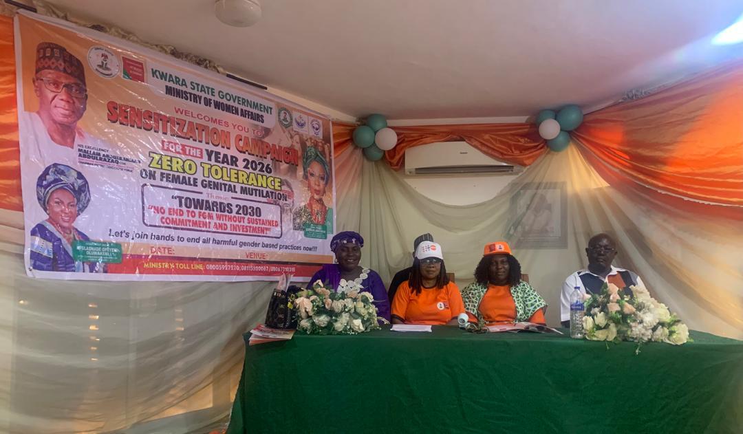 The Commissioner for Women Affairs, Chief (Mrs) Opeyemi Oluwakemi Afolashade, made this call in Ilorin, the state capital, during a community engagement and the inauguration of the State Task Force on FGM, in commemoration of the 2026 International Day of Zero Tolerance for Female Genital Mutilation (FGM), themed “Towards 2030: No End To Female Genital Mutilation Without Sustained Commitments and Investments.”